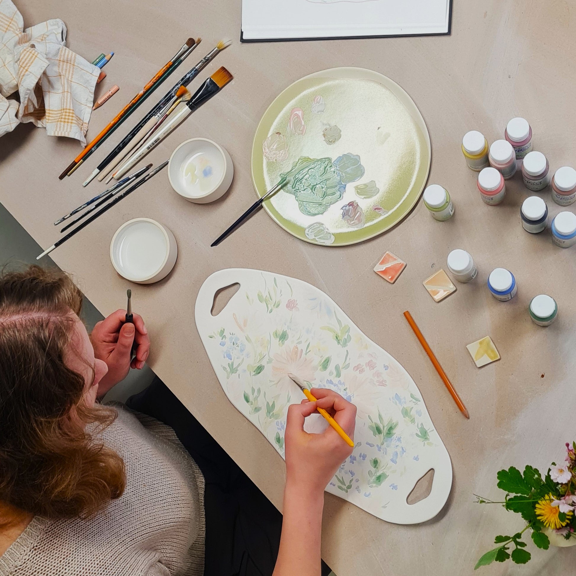 Za vse potrebno bomo poskrbeli mi - zagotovljeni bodo prigrizki, ves material ter orodje za delo. Po končani delavnici bomo vaše izdelke poglazirali in vas obvestili, ko bodo pripravljeni za prevzem. Pladnji bodo primerni za vsakodnevno uporabo, tudi za pomivanje v pomivalnem stroju.
